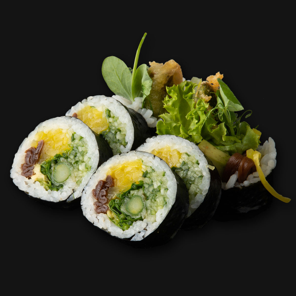 ogórek, oshinko, awokado, szparag w tempurze, sałata, kampyo, kiełki