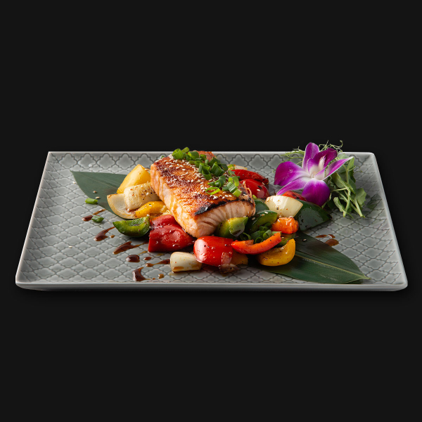 glazurowany sosem teryaki z warzywami i ryżem jaśminowym