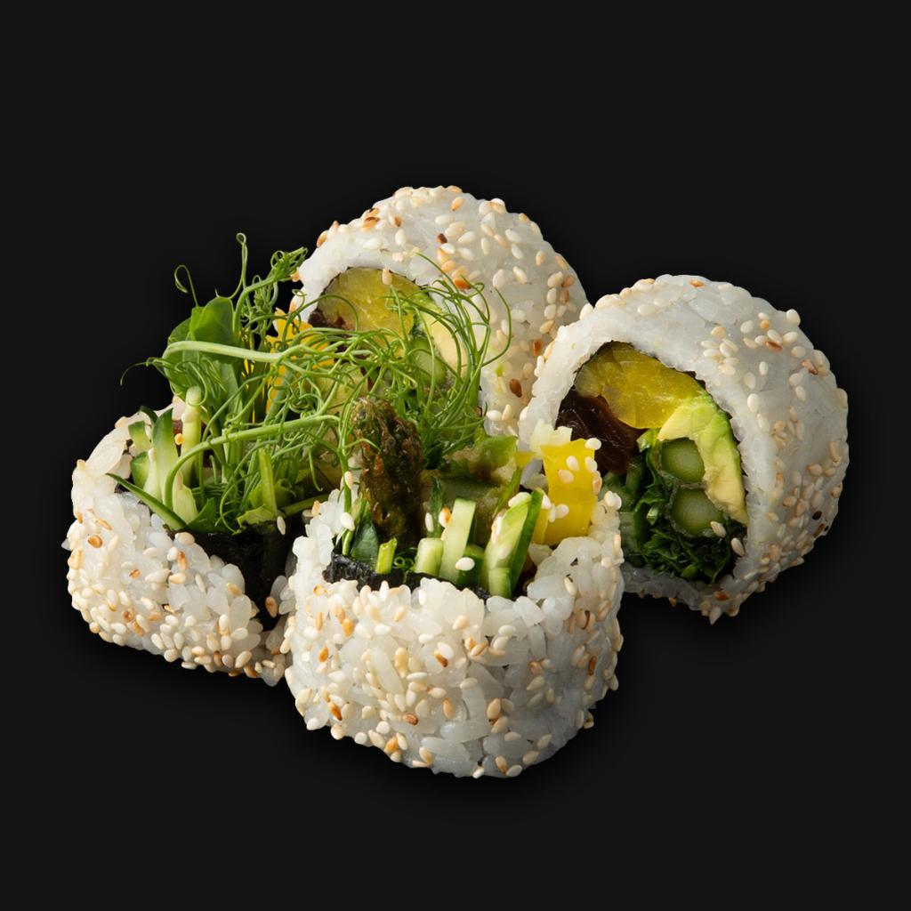 ogórek, awokado, oshinko, kampyo, szparag w tempurze, kiełki ,sezam